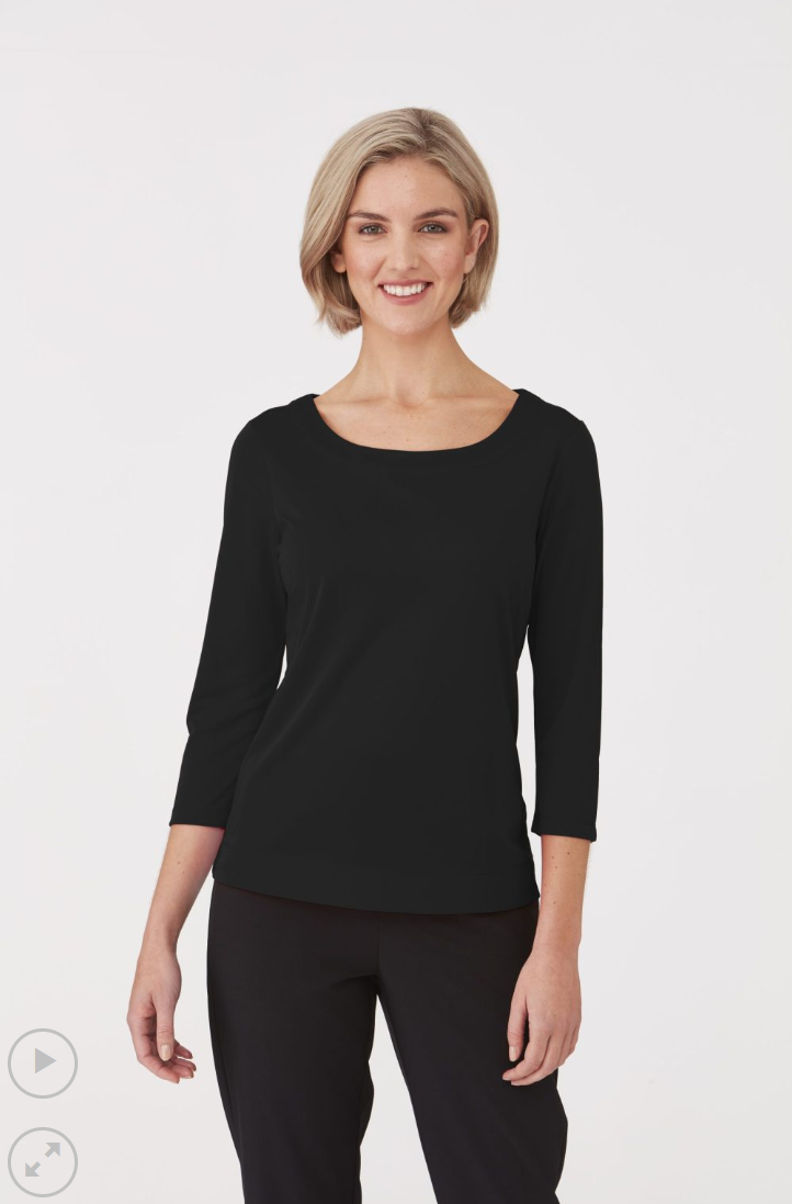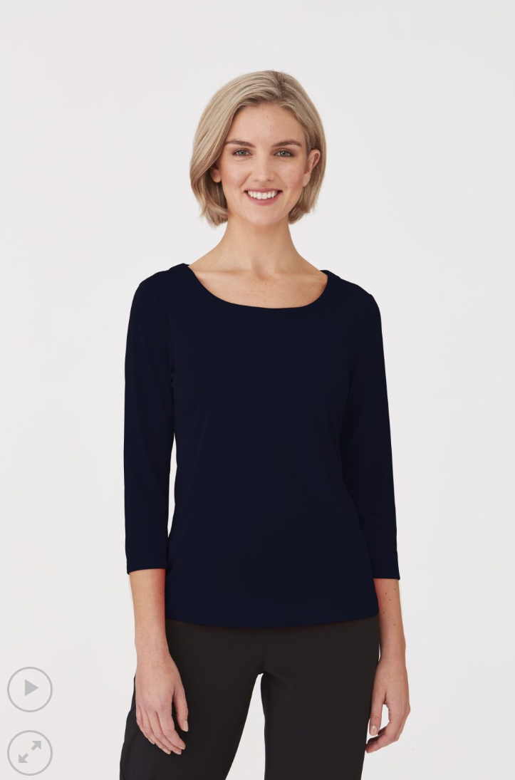This Women's Smart knit 3/4 Sleeve Top is designed to fit most body types, offering a balanced fit that is neither too slim nor too loose. Whether worn tucked in or untucked.