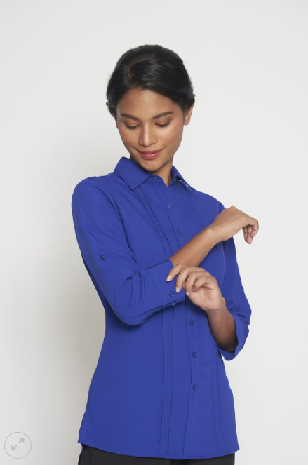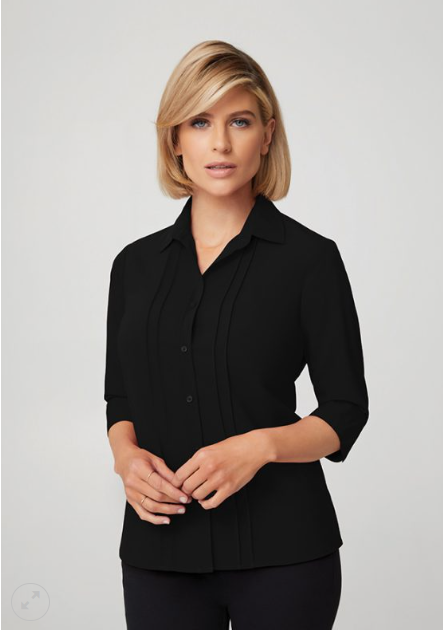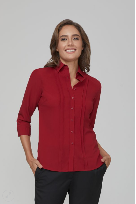 The Women's Sophia 3/4 Sleeve Shirt features a versatile and flattering fit for all body types. It offers the perfect balance of form and comfort, allowing for movement without being too baggy or restrictive.