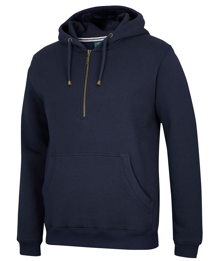 A classic hoodie style with a classy twist. A brass quarter zip adds a point of difference and affords greater practicality.