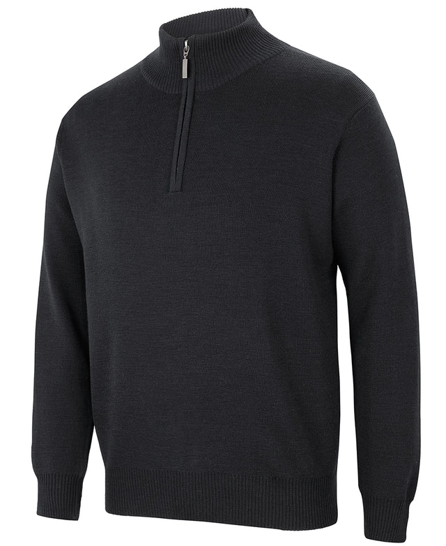 JBs Mens Corporate 1/2 Zip Jumper - a classic fit for timeless style. Made with a luxurious blend of 50% wool for warmth and 50% acrylic for easy care., and ribbed cuff and basque for a comfortable fit.