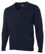 This classic fit men's knitted jumper offers both warmth and easy care. Made with a blend of 50% wool and 50% acrylic, it features a full needle 12 gauge for durability. The fully fashioned and linked design ensures a comfortable fit.